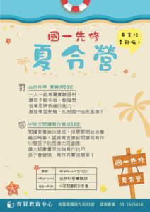 國一先修夏令營 / 最新消息 畢業後要幹嘛 當然要參加今夏最HOT的營隊囉 科學實驗+中英閱讀寫作雙重出擊 自然科學實驗課 一人一組專屬實驗器材 讓孩子動手做、動腦想 培養思辨表達的能力 中英文閱讀寫作養成 藉由時事、經典寓言連結閱讀與寫作 引發孩子的想像力及創意 擴大詞彙量及加強寫作技巧 6 / 2 0(一) – 7 / 1 (五) 只要十天,讓孩子看見不一樣的自己 報名專線(03)364-5050 #夏令營 #國一先修